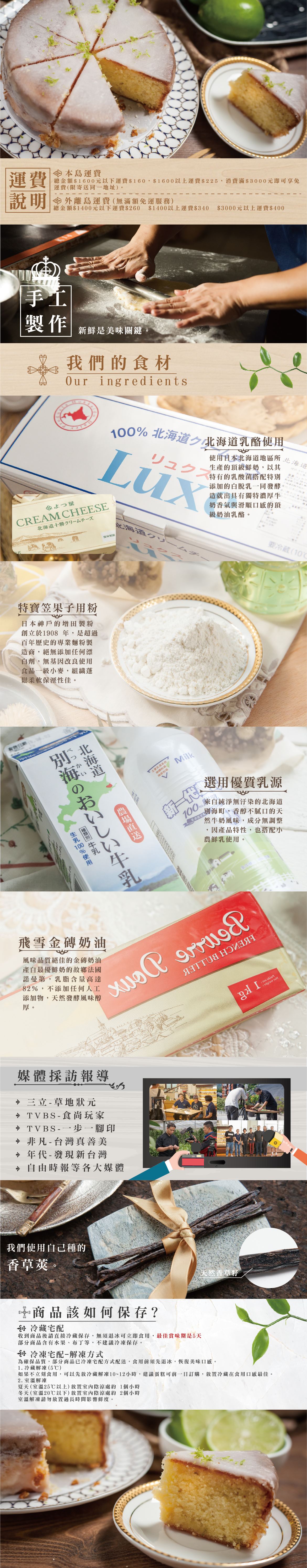 - 埔里在地無籽檸檬、雞蛋、糖、麵粉、台灣香草莢。