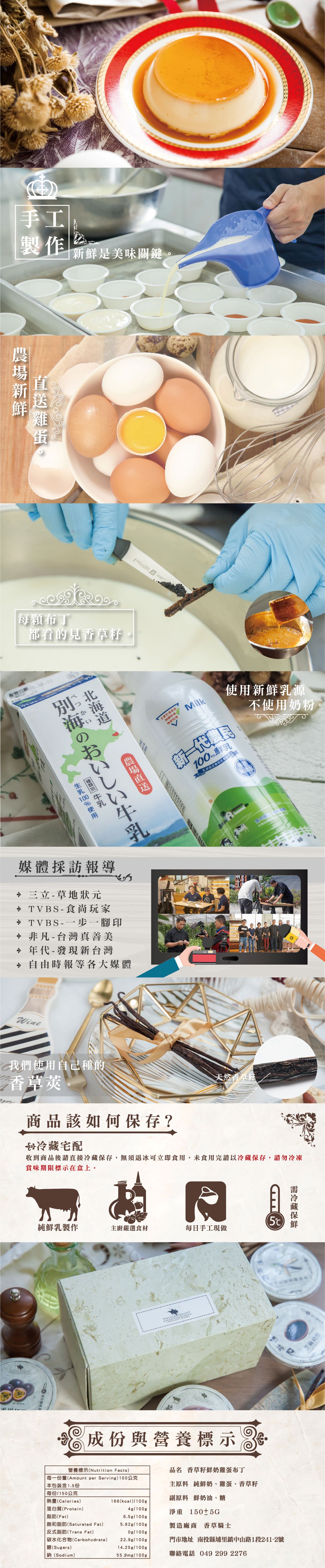 - 雞蛋、鮮奶、鮮奶油、砂糖、台灣香草莢